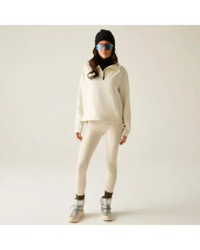 Női polár felső, Prémium női technikai pulóver – puha, bolyhos belsejû poliészter/elasztán anyagból, Ez a kényelmes és sokoldalú női technikai pulóver ideális rétegezéshez, túrázáshoz és szabadidős viselethez. Bolyhos belső felületû poliészter/elasztán dzsörzé anyaga puha tapintású, meleg és rugalmas, így kiváló mozgásszabadságot biztosít. A kenguru stílusú alsó zseb és a 1/4 hosszúságú cipzár fokozza a praktikusságot, a laza szabás pedig kényelmes illeszkedést nyújt egész nap., Puha, bolyhos belsejû poliészter/elasztán dzsörzé anyag, Kenguru stílusú alsó zseb, 1/4 hosszúságú cipzár a könnyû öltözködésért és szellőzésért, Laza szabás a kényelem érdekében, Ajánlott: prémium női technikai pulóver túrázáshoz, rétegezéshez, sportos mindennapi viselethez és átmeneti időjáráshoz.