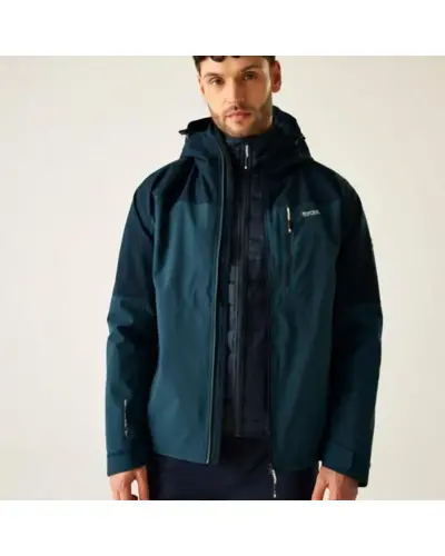 Férfi 3in1 kabát 15.000 mm, Ez a nagy teljesítményû, 3 az 1-ben technikai kabát tökéletes választás egész éves, aktív kültéri használatra – túrázáshoz, kiránduláshoz vagy városi közlekedéshez változékony időjárásban., Külső réteg:, Isotex 15000 4 irányban nyúló stretch szövet (100% poliészter, 165 g/m?) – 15 000 mm vízállóság és 15 000 g/m?/24h légáteresztés a kiemelkedő védelemért és kényelemért., Tartós vízlepergető bevonat (DWR) és teljesen ragasztott varrások biztosítják a teljes vízállóságot., Technikai, huzallal merevített kapucni, állítható húzózsinórokkal, kiváló látómezővel., Vízelvezető csatornával ellátott elülső cipzár, ergonomikus, formázott ujjak, valamint állítható mandzsetta és alsó szegély gondoskodnak a mozgásszabadságról és a komfortos illeszkedésről., Zsebelés: 1 cipzáras mellzseb, 2 alsó cipzáras zseb, belső biztonsági zseb., Belső réteg:, Pehelysúlyú 37 g/m?-es 100% poliamid anyag, újrahasznosított Thermoguard szintetikus szigeteléssel (80 g/m?) – melegen tart, de nem nehezít el., Rugalmas szegély a gallérnál, mandzsettáknál és kabátaljnál, 2 cipzáras alsó zseb., Kiváló középrétegként is használható vagy önálló kabátként enyhébb időben., ?? A két réteg külön is hordható, így négyévszakos kihasználhatóságot biztosít., ?? Fenntartható választás – a bélés újrahasznosított alapanyagból készült., Praktikus és sokoldalú darab, ha egy kabátban keresed a védelmet, kényelmet és felelősségteljes anyaghasználatot.