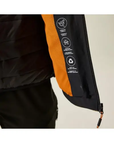 Férfi 3in1 kabát 15.000 mm, Ez a nagy teljesítményû, 3 az 1-ben technikai kabát tökéletes választás egész éves, aktív kültéri használatra – túrázáshoz, kiránduláshoz vagy városi közlekedéshez változékony időjárásban., Külső réteg:, Isotex 15000 4 irányban nyúló stretch szövet (100% poliészter, 165 g/m?) – 15 000 mm vízállóság és 15 000 g/m?/24h légáteresztés a kiemelkedő védelemért és kényelemért., Tartós vízlepergető bevonat (DWR) és teljesen ragasztott varrások biztosítják a teljes vízállóságot., Technikai, huzallal merevített kapucni, állítható húzózsinórokkal, kiváló látómezővel., Vízelvezető csatornával ellátott elülső cipzár, ergonomikus, formázott ujjak, valamint állítható mandzsetta és alsó szegély gondoskodnak a mozgásszabadságról és a komfortos illeszkedésről., Zsebelés: 1 cipzáras mellzseb, 2 alsó cipzáras zseb, belső biztonsági zseb., Belső réteg:, Pehelysúlyú 37 g/m?-es 100% poliamid anyag, újrahasznosított Thermoguard szintetikus szigeteléssel (80 g/m?) – melegen tart, de nem nehezít el., Rugalmas szegély a gallérnál, mandzsettáknál és kabátaljnál, 2 cipzáras alsó zseb., Kiváló középrétegként is használható vagy önálló kabátként enyhébb időben., ?? A két réteg külön is hordható, így négyévszakos kihasználhatóságot biztosít., ?? Fenntartható választás – a bélés újrahasznosított alapanyagból készült., Praktikus és sokoldalú darab, ha egy kabátban keresed a védelmet, kényelmet és felelősségteljes anyaghasználatot.
