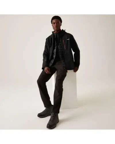 Férfi 3in1 technikai kabát 15.000 mm , Vízhatlan és lélegző Isotex, 15000 újrahasznosított 100% poliészter, stretch szövet, Lélegzőképesség: 15.000g/m?/24 óra, Tartós vízlepergető bevonat, Ragasztott varratok, Kétrétegû, technikai kapucni 2 irányú állítással és megerősített anyaggal a védelem érdekében, Elöl középen cipzár vízelvezető csatornával, 1 cipzáras mellzseb, 2 alsó cipzáras zseb, Formázott ujjak a jobb mozgásért, Belső cipzáras biztonsági zseb, Állítható mandzsetták, Állítható zsinóros szegély, Belső rész, Könnyû 20d poliamid anyag, Közepes súlyú Thermoguard szigetelés, 2 cipzáras alsó zseb, rugalmas gallér, mandzsetta és szegély