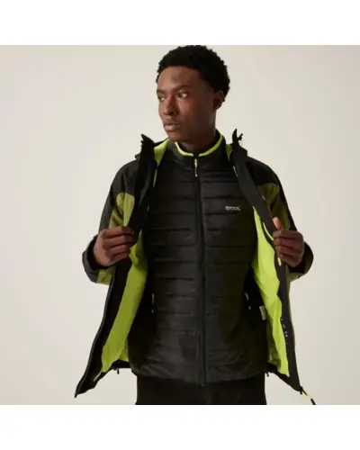 Férfi 3in1 technikai kabát 15.000 mm , Vízhatlan és lélegző Isotex, 15000 újrahasznosított 100% poliészter, stretch szövet, Lélegzőképesség: 15.000g/m?/24 óra, Tartós vízlepergető bevonat, Ragasztott varratok, Kétrétegû, technikai kapucni 2 irányú állítással és megerősített anyaggal a  védelem érdekében, Elöl középen cipzár vízelvezető csatornával, 1 cipzáras mellzseb, 2 alsó cipzáras zseb, Formázott ujjak a jobb mozgásért, Belső cipzáras biztonsági zseb, Állítható mandzsetták, Állítható zsinóros szegély, Belső rész, Könnyû 20d poliamid anyag, Közepes súlyú Thermoguard szigetelés, 2 cipzáras alsó zseb, rugalmas gallér, mandzsetta és szegély