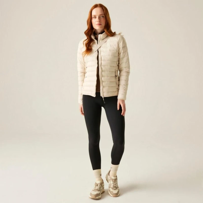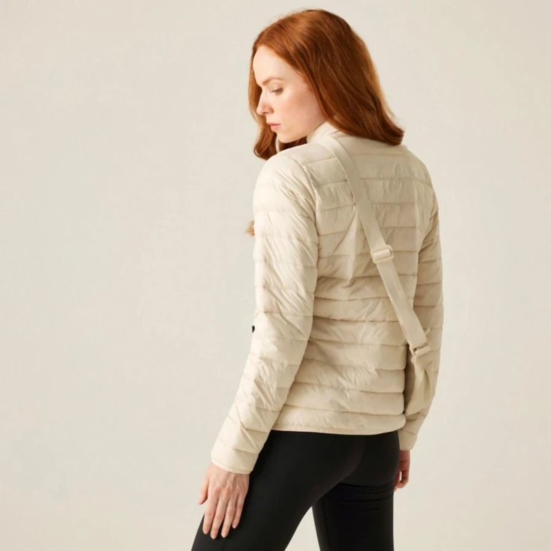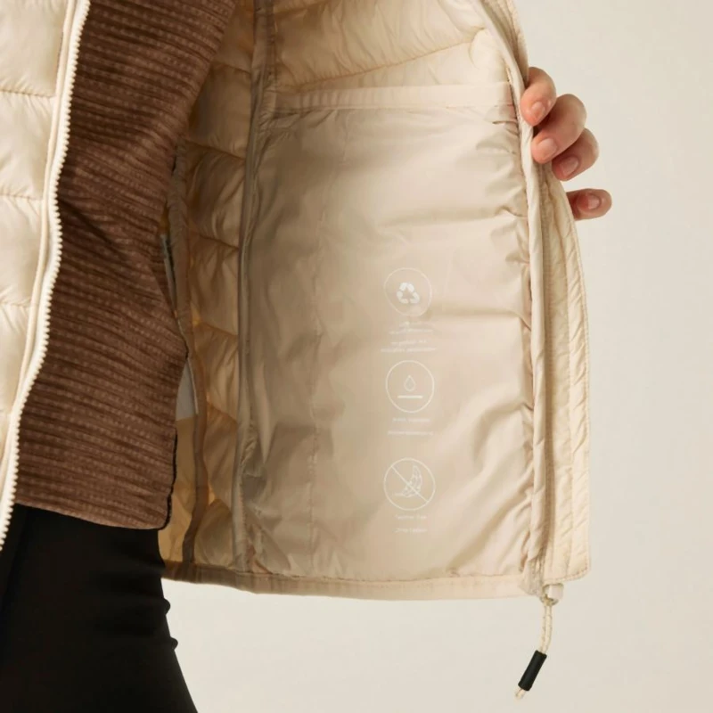 Női könnyû steppelt kabát, Könnyû 20d poliamid anyag, Tartós vízlepergető felület, Feather Free – prémium minőségû újrahasznosított szintetikus pehely szigetelés, Könnyû töltet, Könnyen összenyomható, 2 cipzáras alsó zseb, rugalmas szegélyek, Saját táskába csomagolható