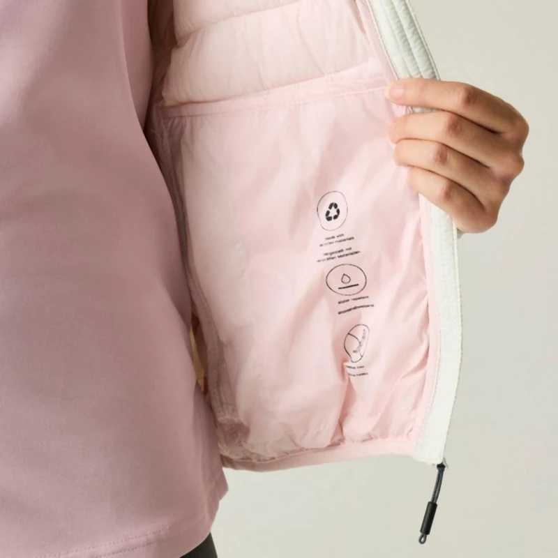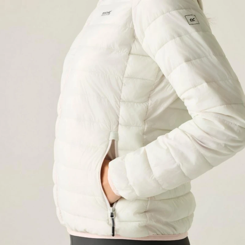 Női könnyû steppelt kabát, Könnyû 20d poliamid anyag, Tartós vízlepergető felület, Feather Free – prémium minőségû újrahasznosított szintetikus pehely szigetelés, Könnyû töltet, Könnyen összenyomható, 2 cipzáras alsó zseb, rugalmas szegélyek, Saját táskába csomagolható
