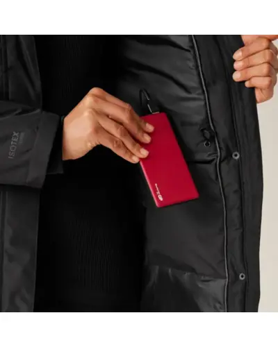Női fûthető kabát 10000 mm vízálló és lélegző anyag, Vízálló és lélegző Isotex 10000 újrahasznosított, selymes tapintású poliészter anyag, Légáteresztési érték: 10,000 g/m?/24 óra, Tartós vízlepergető bevonat, Közepes súlyú, újrahasznosított Thermoguard szigetelés, 100% poliészter taft bélés, Ragasztott varratok a maximális vízállóság érdekében, Belső cipzáras biztonsági zseb, Beépített kapucni, Kétirányú középső cipzár, Rejtett patentos záródás a gombolópánton, Belső viharmandzsetták, Állítható húzózsinóros derék, 2 alsó foltzseb kézmelegítő zsebekkel, Fûthető technológia:, Aktív, akkumulátorral mûködő fûtőrendszer (akkumulátor nem tartozék!), Akkumulátor tartó zseb, 1 nagy fûtött hátsó panel, Egyszerû használat, Biztonsági lekapcsoló, Ez a kabát ideális választás az extrém hideg időjárási körülmények között is, mivel a beépített fûthető , technológia és az újrahasznosított Thermoguard szigetelés biztosítja a maximális meleget. A vízálló és , lélegző anyag, a ragasztott varratok és a tartós vízlepergető bevonat garantálják a szárazságot és a , komfortot. A praktikus zsebek és az állítható derék növelik a kabát funkcionalitását és kényelmét.