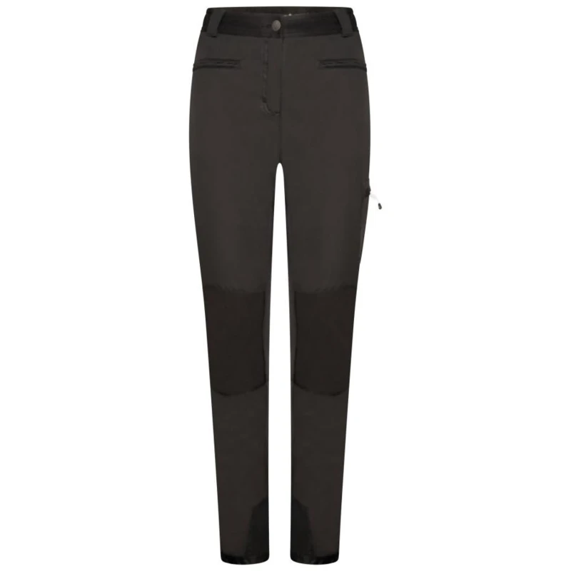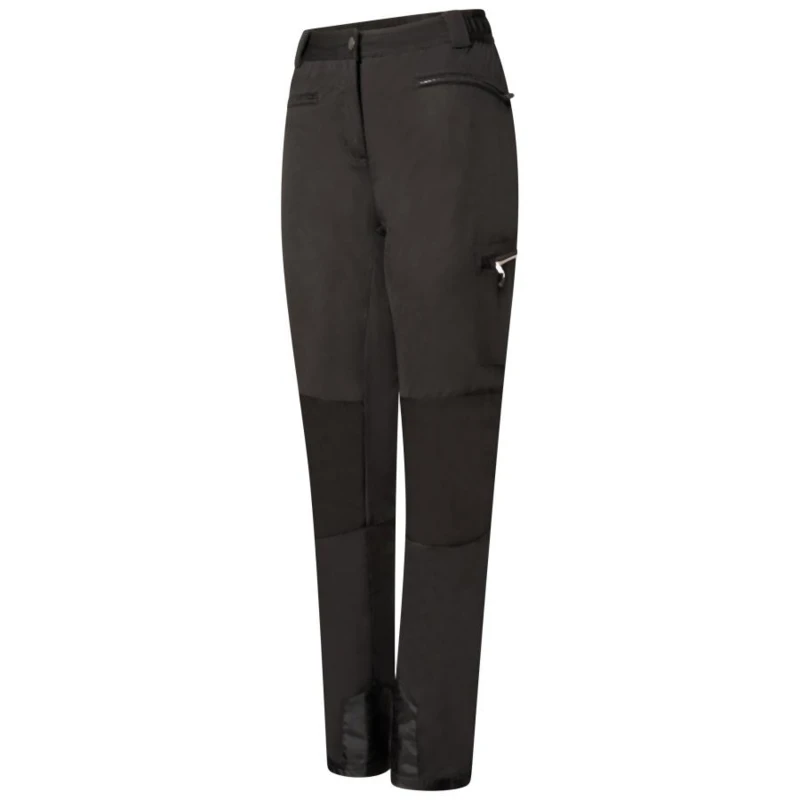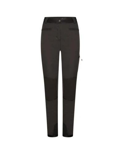 Női túranadrág, Ilus hibrid nadrág elöl D-lab softshellel és újrahasznosított, core stretch anyaggal hátul, Vízlepergető felület, Részben gumírozott derékrész, 2 db cipzáras oldalzseb, 1 db cipzáras oldalzseb, különlegesen szabott térdrész, Levehető lábszárvédők a fokozott védelem érdekében, Kopásálló anyag megerősítés a belső boka részen, Cipzáras szegélyzárás