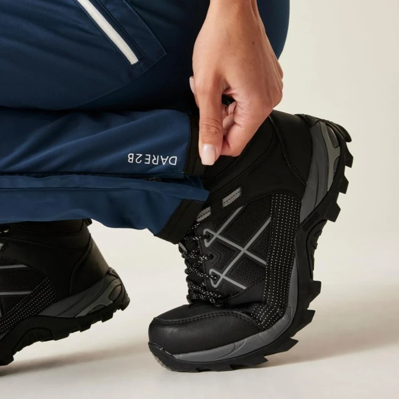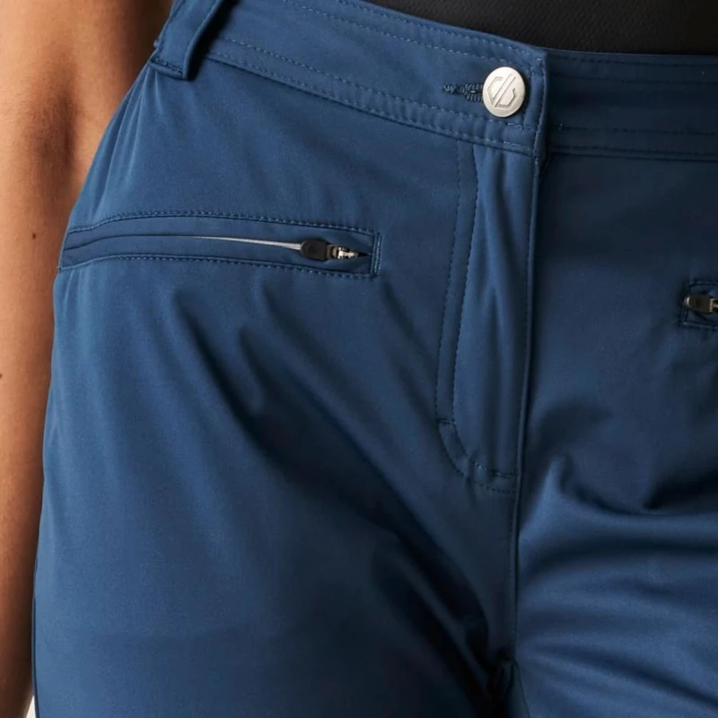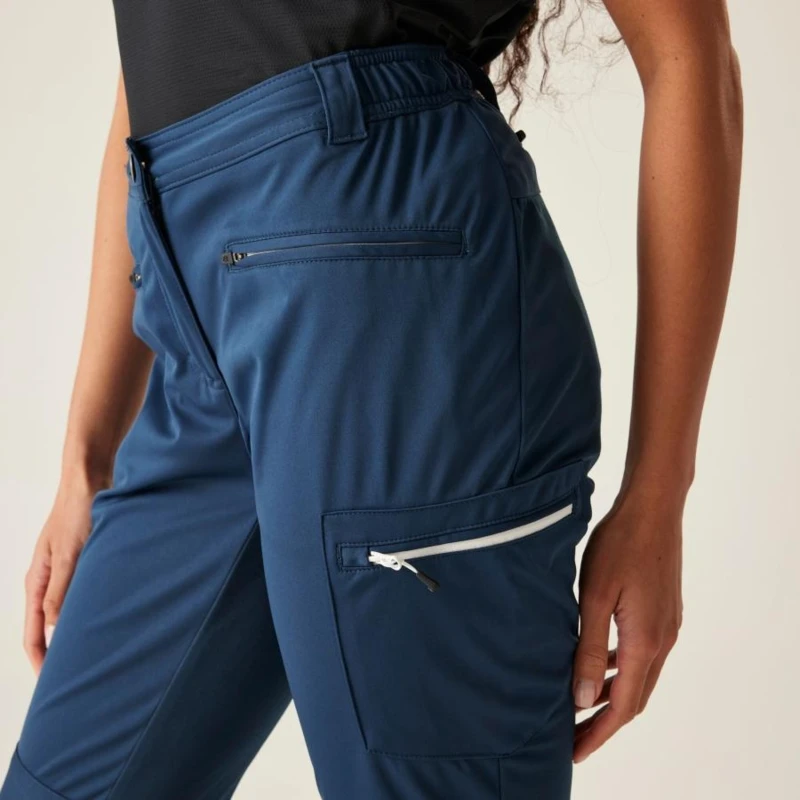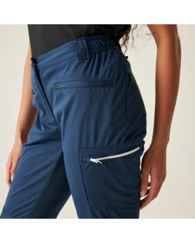 Női túranadrág, Ilus hibrid nadrág elöl D-lab softshellel és újrahasznosított, core stretch anyaggal hátul, Vízlepergető felület, Részben gumírozott derékrész, 2 db cipzáras oldalzseb, 1 db cipzáras oldalzseb, különlegesen szabott térdrész, Levehető lábszárvédők a fokozott védelem érdekében, Kopásálló anyag megerősítés a belső boka részen, Cipzáras szegélyzárás
