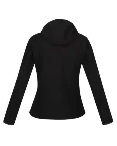 női softshell felső, Meleg bélésû, rugalmas 96% poliészter 4% elasztán softshell anyag, Tartós víztaszító felület, Szélálló, Nem-levehető kapucni, Két cipzáros zseb az alján, Rugalmas szélû kapucni és mandzsetta, Állítható, húzózsinóros alsó szegély
