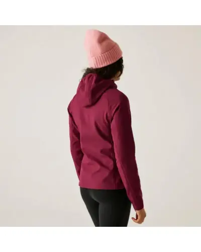 női softshell felső, Meleg bélésû, rugalmas 96% poliészter 4% elasztán softshell anyag, Tartós víztaszító felület, Szélálló, Nem-levehető kapucni, Két cipzáros zseb az alján, Rugalmas szélû kapucni és mandzsetta, Állítható, húzózsinóros alsó szegély