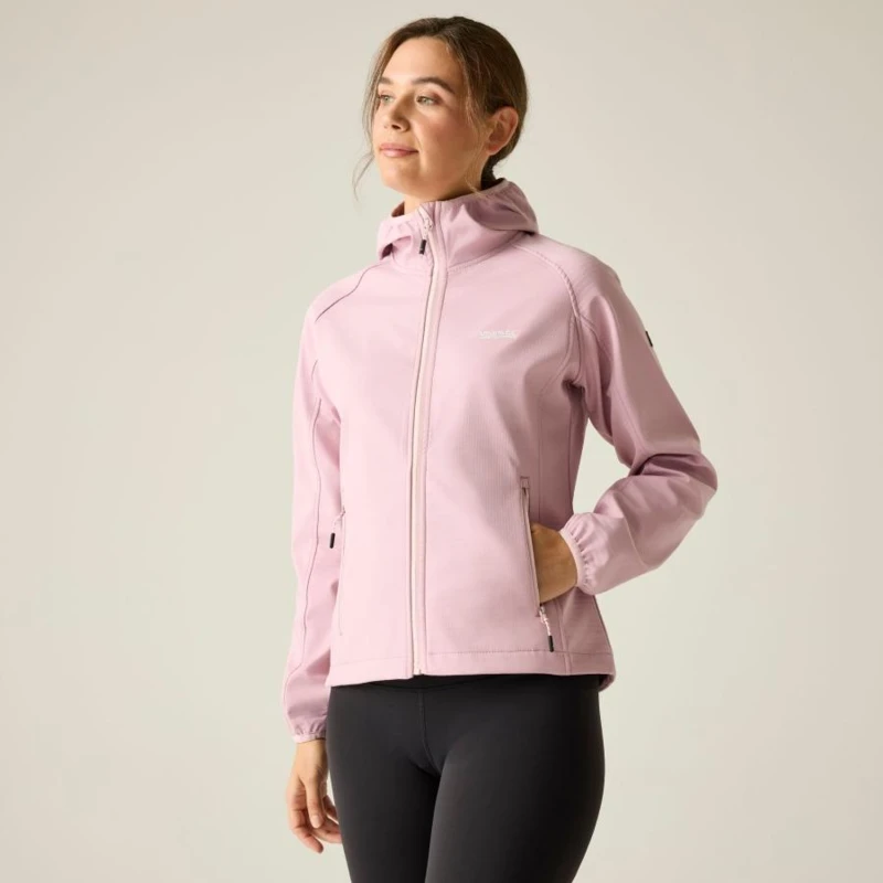 női softshell felső, Meleg bélésû, rugalmas 96% poliészter 4% elasztán softshell anyag, Tartós víztaszító felület, Szélálló, Nem-levehető kapucni, Két cipzáros zseb az alján, Rugalmas szélû kapucni és mandzsetta, Állítható, húzózsinóros alsó szegély