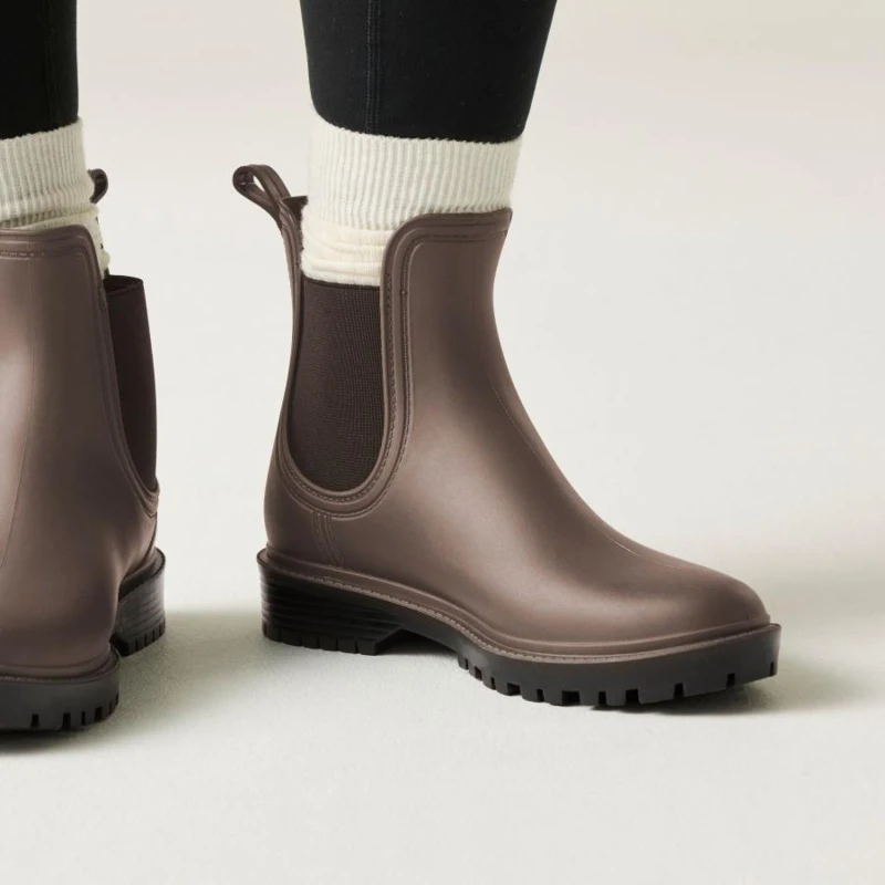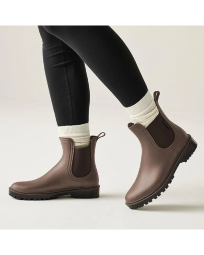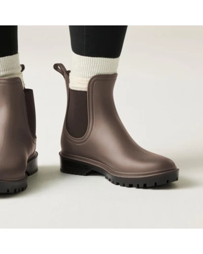 Női gumicsizma, PVC felsőrész a vízálló v, újrahasznosított habszivacs talpbetét, kényelem és komfortosság, Több irányú ékes talpkialakítás, négyzet alakú sarok - megbízható stabilitás