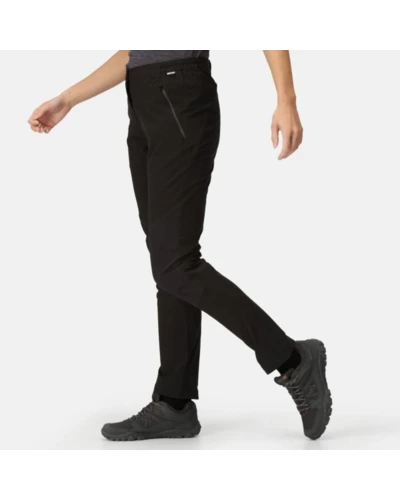 Női túranadrág rövidebb szárhossz, ISOFLEX+ fejlett sztreccs anyag - 100% poliészter, ISOFLEX sztreccs rács texturált betétek - 95% poliészter/5% elasztán, Tartós vízlepergető felület, Szélálló, Részben gumírozott derékrész, 2 cipzáras oldalzseb és 1 cipzáras lábszárzseb, rövidebb szárhossz -2 cm