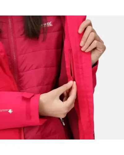 női 3in1 kabát 15.000 mm, Isotex - 15.000 mm-ig vízálló és lélegző, rugalmas 100% poliészter anyag, Lélegző érték: 10.000g/m2/nap, Tartós víztaszító felület, Ragasztott varrások, Remekül illeszkedő, két irányban állítható, megerősített, nem-levehető technikai kapucni, Vízálló cipzár állvédőval és beázásbiztos kialakítással, Állvédővel és beázásbiztos kialakítással, Különlegesen szabott ujjak biztosítják a teljes mozgásszabadságot , Két vízálló cipzáros zseb az alján, Cipzáros biztonsági belső zsebbel, Állítható mandzsetta, Állítható, húzózsinóros alsó szegély, Belső:, Könnyû, 20D poliamid anyag, Tartós víztaszító felület, Thermo-Guard hőszigetelés, Könnyû töltet, Két cipzáros zseb az alján, Rugalmas szélû mandzsetta és alsó szegély