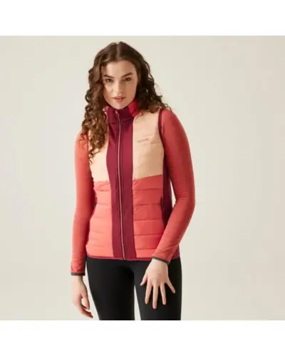 Női kifordítható mellény, 2 az 1-ben kifordítható – az egyik oldala steppelt az extra hőtartásért, Újrahasznosított, 100% rugalmas poliészter, Könnyû 20d poliamid anyag, Steppelt poliamid bélés , Újrahasznosított, tollhatású, pehelytapintású töltet, 2 cipzáras alsó zseb az egyik oldalon és 2 alsó zseb a másik oldalon