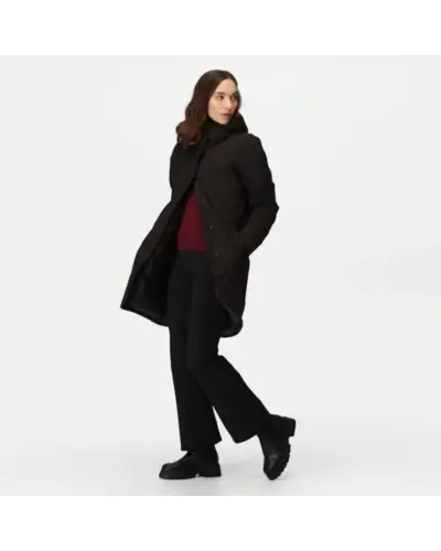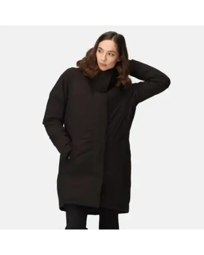 Női téli kabát 8.000 membrános, Vízálló és lélegző Isotex 8000 újrahasznosított 100% poliészter sztreccs anyag, Légáteresztő képesség: 8000 g/m?/24 óra, Tartós vízlepergető felület, Ragasztott varratok, Belső cipzáras biztonsági zseb, Feather Free – prémium minőségû újrahasznosított szintetikus pehelyszigetelés, Nehézsúlyú töltet, fix, állítható kapucni, 2 alsó zseb, Belső bordás mandzsetta