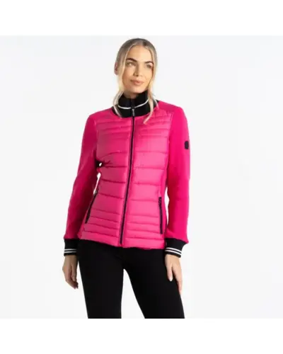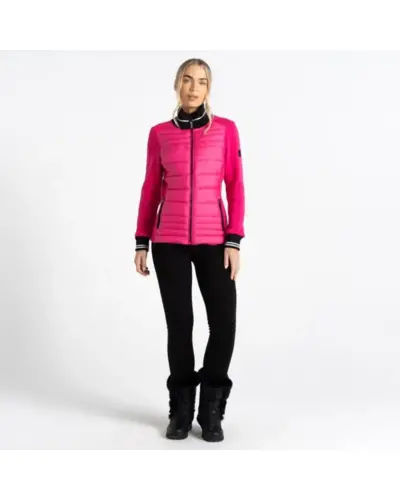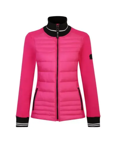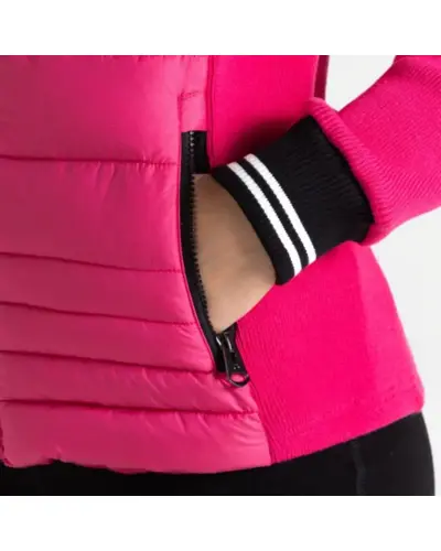 Női steppelt felső, Újrahasznosított nylon/poliészter keverék anyag, steppelt mellső nylon/poliészter keverékből, Az ujjak és a hátsó test poliészter/elasztán, Újrahasznosított, magas hőmérsékletet tartó töltet – ILoft Ecofill, Bordás gallér, szegély és mandzsetta, 2 x alsó cipzáras zseb