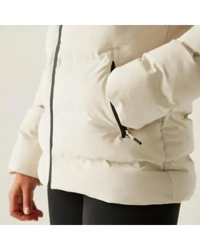 Női prémium télikabát 15000 mm, Női prémium télikabát rugalmas, vízálló + 300g újrahasznosított szigeteléssel, Ez a sportosan elegáns női télikabát tökéletes társ a hideg, csapadékos időben akár aktív kültéri mozgáshoz, akár hétköznapi viseletre keresel megbízható védelmet. A víz- és szélálló stretch softshell anyag, valamint a 300 g-os, pehelyhatású szintetikus szigetelés melegséget és kényelmet biztosít anélkül, hogy a mozgásszabadság csorbulna., 88% poliészter / 12% elasztán szövött stretch membrános anyag 276 g/m?, Víz- és szélálló membránnal + hőpréselt dizájnelemek, Vízállóság: 15 000 mm, légáteresztés: 15 000 g/m?/24 óra, DWR (tartós vízlepergető) külső kezelés, Pehelymentes, újrahasznosított Warmloft töltet 300 g, Poliamid bélés sima, kényelmes viselet, Merevített napellenzős technikai kapucni húzózsinóros állítással, Középső cipzár vízelvezető csatornával, 2 alsó cipzáras zseb + belső biztonsági cipzáras zseb, Viharos mandzsetta kialakítás extra védelem a hideg ellen, Újrahasznosított anyagból készült környezettudatos döntés, ? Ajánlott: városi viselethez, téli utazásokhoz, szabadtéri sétákhoz és mindennapos használatra hideg időben., ?? Meleg, vízálló és rugalmas a stílusos aktív nők kabátja.