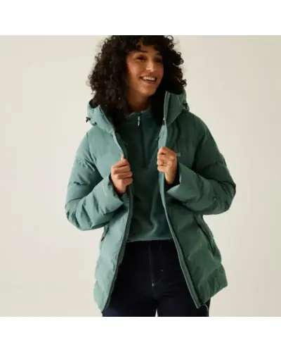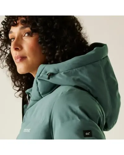 Női prémium télikabát 15000 mm, Női prémium télikabát rugalmas, vízálló + 300g újrahasznosított szigeteléssel, Ez a sportosan elegáns női télikabát tökéletes társ a hideg, csapadékos időben akár aktív kültéri mozgáshoz, akár hétköznapi viseletre keresel megbízható védelmet. A víz- és szélálló stretch softshell anyag, valamint a 300 g-os, pehelyhatású szintetikus szigetelés melegséget és kényelmet biztosít anélkül, hogy a mozgásszabadság csorbulna., 88% poliészter / 12% elasztán szövött stretch membrános anyag 276 g/m?, Víz- és szélálló membránnal + hőpréselt dizájnelemek, Vízállóság: 15 000 mm, légáteresztés: 15 000 g/m?/24 óra, DWR (tartós vízlepergető) külső kezelés, Pehelymentes, újrahasznosított Warmloft töltet 300 g, Poliamid bélés sima, kényelmes viselet, Merevített napellenzős technikai kapucni húzózsinóros állítással, Középső cipzár vízelvezető csatornával, 2 alsó cipzáras zseb + belső biztonsági cipzáras zseb, Viharos mandzsetta kialakítás extra védelem a hideg ellen, Újrahasznosított anyagból készült környezettudatos döntés, Ajánlott: városi viselethez, téli utazásokhoz, szabadtéri sétákhoz és mindennapos használatra hideg időben., Meleg, vízálló és rugalmas a stílusos aktív nők kabátja.