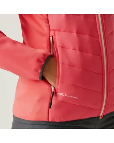 Női hybrid felső, Extol Stretch meleg hátú polár – 90% poliészter/10%, elasztán - 235 g/m?, Poliamid panelek , Tartós vízlepergető felület, Újrahasznosított szintetikus Warmloft szigetelő töltet, Könnyen összenyomható, Könnyû töltet, fix kapucni, Belső cipzárvédő, 2 cipzáras alsó zseb, rugalmas szegélyek