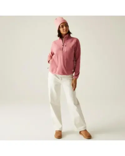 Női polár felső, Női félcipzáras mikropolár felső könnyû meleg, sportos stílus, Ez a 210 g/m? súlyú, puha mikropolár felső tökéletes választás a hûvösebb napokra, akár önállóan, akár kabát alá rétegezve. A félcipzár praktikus szellőzést biztosít, míg a rugalmas szegések a gallérnál, az elülső részen, a mandzsettáknál és a szegélynél kényelmes illeszkedést adnak. A raglánujjak szabad mozgást tesznek lehetővé, a cipzáras mellzseb és alsó zsebek pedig biztonságosan tárolják a kisebb értéktárgyakat., Anyag: 100% poliészter mikropolár 210 g/m?, Félcipzáras kialakítás a könnyû felvételért és szellőzésért, Rugalmas szegés a gallérnál, elülső részen, mandzsettánál és szegélynél, Raglánujjas szabás a mozgásszabadságért, 1 cipzáras mellzseb és 2 cipzáras alsó zseb, Dekoratív lapvarrott díszöltés, Enyhén ívelt szegély, Újrahasznosított anyagból készült fenntartható választás, Ajánlott: túrázáshoz, szabadtéri programokhoz és hétköznapi sportos viselethez, Meleg, praktikus, környezettudatos ideális társ aktív napokra