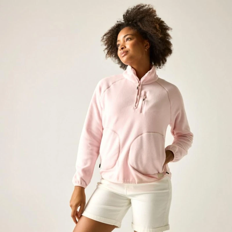 Női polár felső, Női félcipzáras mikropolár felső – könnyû meleg, sportos stílus, Ez a 210 g/m? súlyú, puha mikropolár felső tökéletes választás a hûvösebb napokra, akár önállóan, akár kabát alá rétegezve. A félcipzár praktikus szellőzést biztosít, míg a rugalmas szegések a gallérnál, az elülső részen, a mandzsettáknál és a szegélynél kényelmes illeszkedést adnak. A raglánujjak szabad mozgást tesznek lehetővé, a cipzáras mellzseb és alsó zsebek pedig biztonságosan tárolják a kisebb értéktárgyakat., Anyag: 100% poliészter mikropolár – 210 g/m?, Félcipzáras kialakítás a könnyû felvételért és szellőzésért, Rugalmas szegés a gallérnál, elülső részen, mandzsettánál és szegélynél, Raglánujjas szabás a mozgásszabadságért, 1 cipzáras mellzseb és 2 cipzáras alsó zseb, Dekoratív lapvarrott díszöltés, Enyhén ívelt szegély, Újrahasznosított anyagból készült – fenntartható választás, Ajánlott: túrázáshoz, szabadtéri programokhoz és hétköznapi sportos viselethez, Meleg, praktikus, környezettudatos – ideális társ aktív napokra