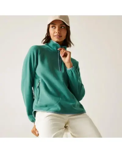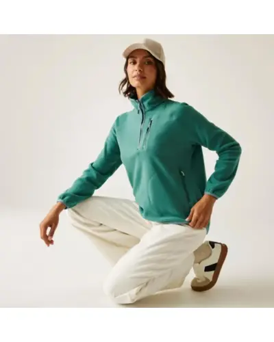 Női polár felső, Női félcipzáras mikropolár felső könnyû meleg, sportos stílus, Ez a 210 g/m? súlyú, puha mikropolár felső tökéletes választás a hûvösebb napokra, akár önállóan, akár kabát alá rétegezve. A félcipzár praktikus szellőzést biztosít, míg a rugalmas szegések a gallérnál, az elülső részen, a mandzsettáknál és a szegélynél kényelmes illeszkedést adnak. A raglánujjak szabad mozgást tesznek lehetővé, a cipzáras mellzseb és alsó zsebek pedig biztonságosan tárolják a kisebb értéktárgyakat., Anyag: 100% poliészter mikropolár 210 g/m?, Félcipzáras kialakítás a könnyû felvételért és szellőzésért, Rugalmas szegés a gallérnál, elülső részen, mandzsettánál és szegélynél, Raglánujjas szabás a mozgásszabadságért, 1 cipzáras mellzseb és 2 cipzáras alsó zseb, Dekoratív lapvarrott díszöltés, Enyhén ívelt szegély, Újrahasznosított anyagból készült fenntartható választás, Ajánlott: túrázáshoz, szabadtéri programokhoz és hétköznapi sportos viselethez, Meleg, praktikus, környezettudatos ideális társ aktív napokra