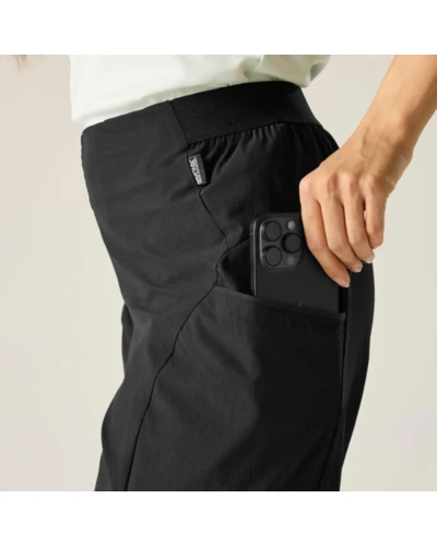 Női túrashort, Prémium női könnyû túranadrág – ISOFLEX stretch technológia, vízlepergető kivitel, UPF 50+ UV-védelem, Ez a női technikai túranadrág ISOFLEX active stretch anyagból készült, 86% poliamid / 14% elasztán összetételben, 130 g/m? súlyban. A könnyû, rugalmas szövet gyorsan szárad és szabad mozgást biztosít aktív használat során. A tartós vízlepergető bevonat enyhe csapadék esetén is védelmet nyújt, míg a részben elasztikus derékrész kényelmes illeszkedést biztosít. Az UPF 50+ UV-védelem hatékonyan csökkenti a napsugárzás káros hatásait., Főbb jellemzők:, ISOFLEX active stretch technológia, 86% poliamid / 14% elasztán könnyû technikai anyag, 130 g/m?, Tartós vízlepergető bevonat, Gyorsan száradó kialakítás a fokozott komfortért, Könnyû konstrukció aktív outdoor teljesítményhez, Részben elasztikus derékrész, UPF 50+ UV-védelem, Ajánlott: Női túranadrágként ideális túrázáshoz, trekkinghez, kiránduláshoz, utazáshoz és nyári szabadtéri programokhoz. Kiváló választás meleg, napos vagy változékony időjárási körülmények között, amikor fontos a könnyû súly és a gyors száradás., Fenntarthatóság: A tartós poliamid alapanyag hosszú élettartamot biztosít, csökkentve a gyakori ruhacsere szükségességét. A minőségi konstrukció több szezonon át megbízható teljesítményt nyújt.