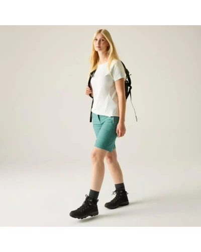 Női túra bermuda nadrág, Prémium női ultrakönnyû túranadrág ISOFLEX stretch technológia, vízlepergető kivitel, UPF 50+ UV-védelem, Ez a női technikai túranadrág ISOFLEX active stretch anyagból készült, 96% poliészter / 4% elasztán összetételben, 125 g/m? súlyban. Az ultrakönnyû, rugalmas szövet gyorsan szárad és szabad mozgást biztosít aktív használat során. A tartós vízlepergető bevonat enyhe csapadék esetén is védelmet nyújt, míg a részben elasztikus derékrész és a praktikus zsebkialakítás fokozza a funkcionalitást. Az UPF 50+ UV-védelem hatékonyan csökkenti a napsugárzás káros hatásait., Főbb jellemzők:, ISOFLEX active stretch technológia, 96% poliészter / 4% elasztán ultrakönnyû technikai anyag, 125 g/m?, Ultrakönnyû konstrukció aktív outdoor teljesítményhez, Tartós vízlepergető bevonat, Gyorsan száradó kialakítás, Részben elasztikus derékrész heveder övvel, Többzsebes kialakítás elöl és hátul cipzáras zsebekkel, UPF 50+ UV-védelem, Ajánlott: Női túranadrágként ideális túrázáshoz, trekkinghez, kiránduláshoz, utazáshoz és nyári szabadtéri programokhoz. Kiváló választás meleg, napos vagy változékony időjárási körülmények között, amikor fontos a könnyû súly és a gyors száradás., Fenntarthatóság: A tartós, könnyû poliészter alapanyag hosszú élettartamot biztosít, csökkentve a gyakori ruhacsere szükségességét. A minőségi konstrukció több szezonon át megbízható teljesítményt nyújt.
