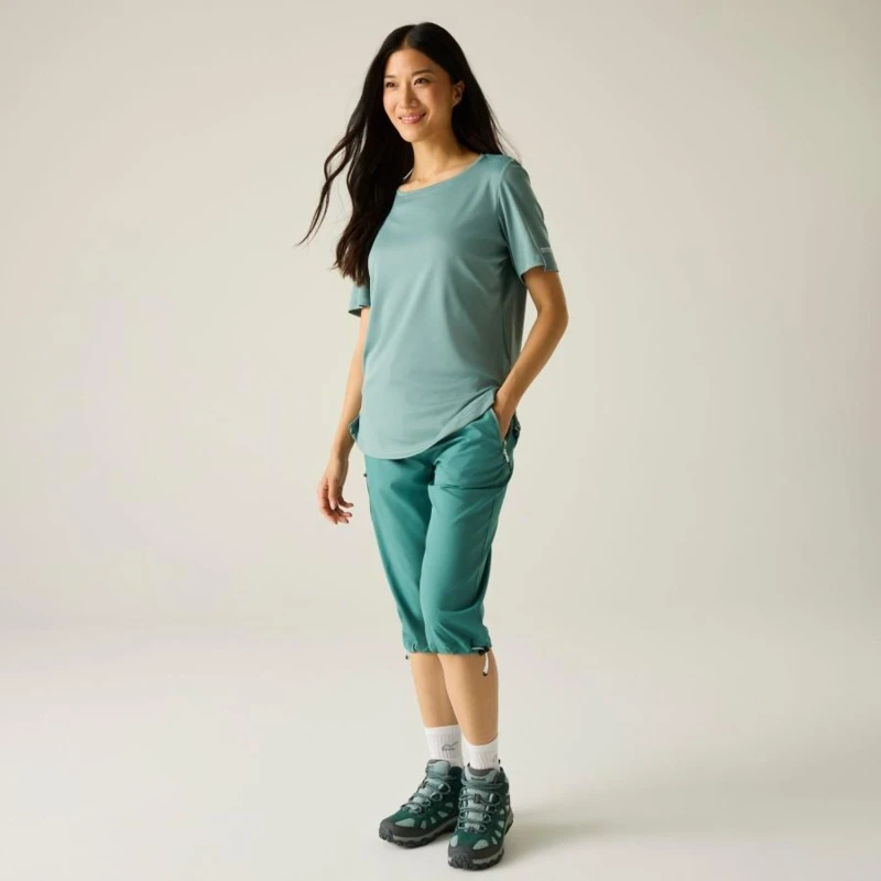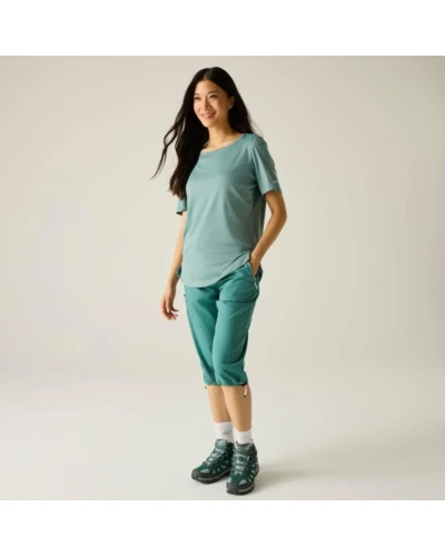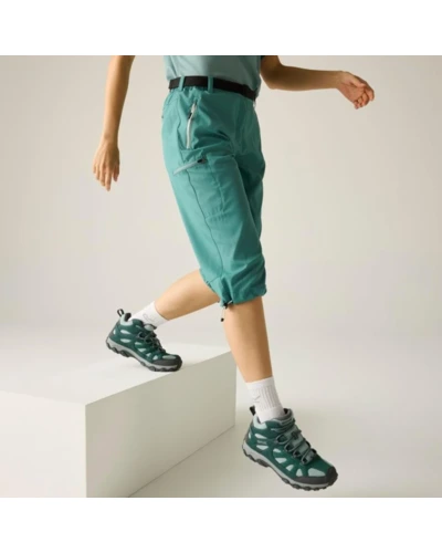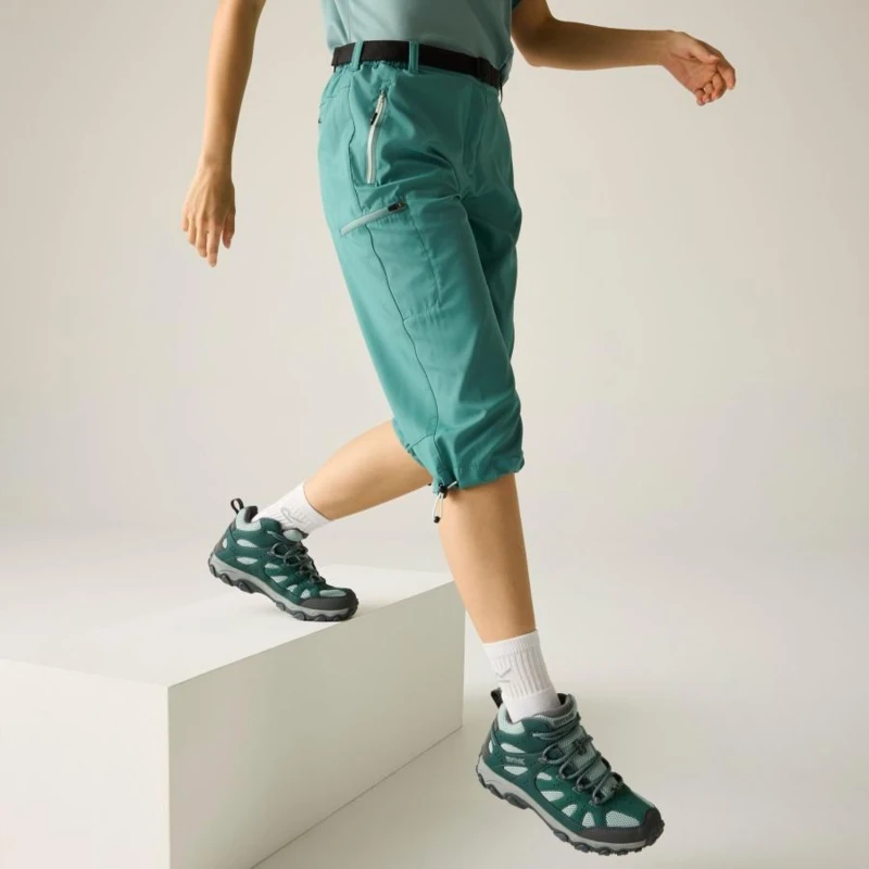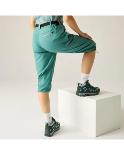 Női túra capry nadrág, Prémium női ultrakönnyû túranadrág – ISOFLEX stretch technológia, vízlepergető kivitel, UPF 50+ UV-védelem, Ez a női technikai túranadrág ISOFLEX active stretch anyagból készült, 96% poliészter / 4% elasztán összetételben, 125 g/m? súlyban. Az ultrakönnyû, rugalmas szövet gyorsan szárad és maximális mozgásszabadságot biztosít aktív használat során. A tartós vízlepergető bevonat enyhe csapadék esetén is védelmet nyújt, míg az állítható derékrész és a praktikus zsebkialakítás fokozza a funkcionalitást. Az UPF 50+ UV-védelem segít csökkenteni a napsugárzás káros hatásait., Főbb jellemzők:, ISOFLEX active stretch technológia, 96% poliészter / 4% elasztán ultrakönnyû technikai anyag, 125 g/m?, Ultrakönnyû konstrukció aktív outdoor teljesítményhez, Tartós vízlepergető bevonat, Gyorsan száradó kialakítás, Részben elasztikus derékrész heveder övvel, Többzsebes kialakítás elöl és hátul cipzáras zsebekkel, Állítható húzózsinór a nadrágszár alján, UPF 50+ UV-védelem, Ajánlott: Női túranadrágként ideális túrázáshoz, trekkinghez, kiránduláshoz, utazáshoz és nyári szabadtéri programokhoz. Kiváló választás meleg, napos vagy változékony időjárási körülmények között, amikor fontos a könnyû súly és a gyors száradás., Fenntarthatóság: A tartós, könnyû poliészter alapanyag hosszú élettartamot biztosít, csökkentve a gyakori ruhacsere szükségességét. A minőségi konstrukció több szezonon át megbízható teljesítményt nyújt.