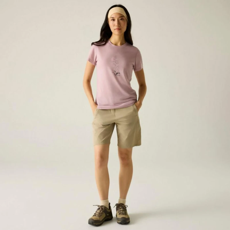 Női merinó póló, Anyag:, 160gsm, 50% Merino gyapjú / 50% poliészter jersey szövet, Tulajdonságok:, Kivételesen puha tapintás, Gyorsan száradó anyag, Természetes szagkontroll a friss viseletért, Modern grafikus nyomat, Ideális választás kényelmes, stílusos és praktikus mindennapi viselethez.