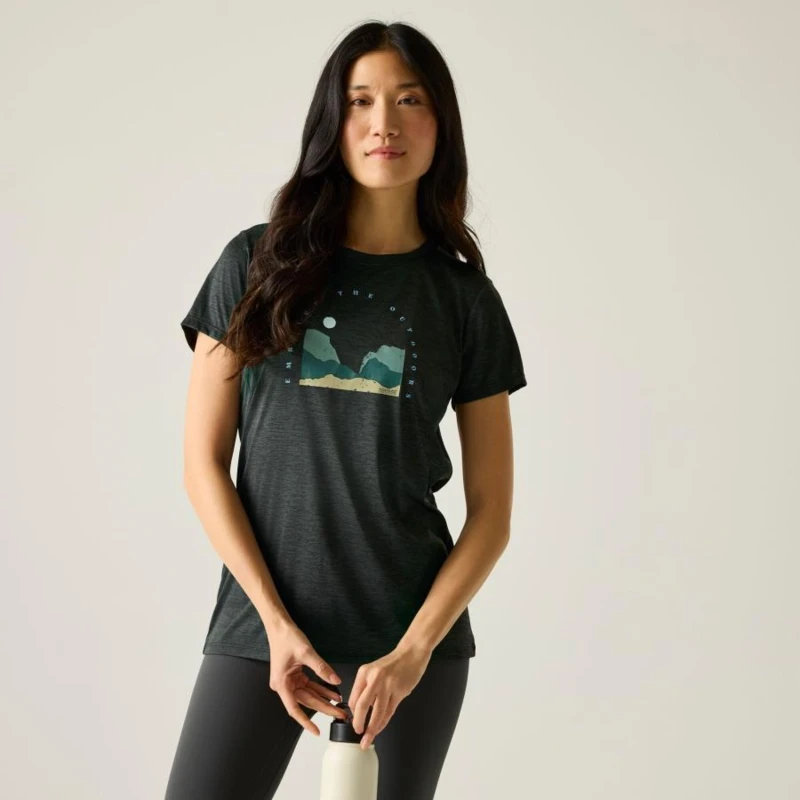 Női gyorsan száradó felső, Prémium női technikai sportfelső piké és marl jersey kombináció, gyors száradás, Ez a női technikai póló 100% poliészter piké anyagból készült 135 g/m? súlyban, amelyet 100% gyorsan száradó poliészter marl jersey betétek egészítenek ki 100 g/m? kivitelben. A könnyû, légáteresztő anyagok hatékony nedvességelvezetést és gyors száradást biztosítanak aktív mozgás közben. A grafikai nyomat modern, sportos megjelenést kölcsönöz a modellnek., Főbb jellemzők:, 100% poliészter piké anyag, 135 g/m?, 100% gyorsan száradó poliészter marl jersey anyag, 100 g/m?, Gyorsan száradó kialakítás, Hatékony izzadságelvezető teljesítmény, Grafikai nyomat, Ajánlott: Női technikai sportfelsőként ideális futáshoz, túrázáshoz, edzéshez, kiránduláshoz és nyári szabadtéri programokhoz. Kiváló választás meleg időben vagy intenzív mozgással járó tevékenységekhez, amikor fontos a könnyû súly és a komfort., Fenntarthatóság: A tartós poliészter alapanyag hosszú élettartamot biztosít, csökkentve a gyakori ruhacsere szükségességét. A minőségi kivitel hozzájárul a fenntarthatóbb ruhahasználathoz.