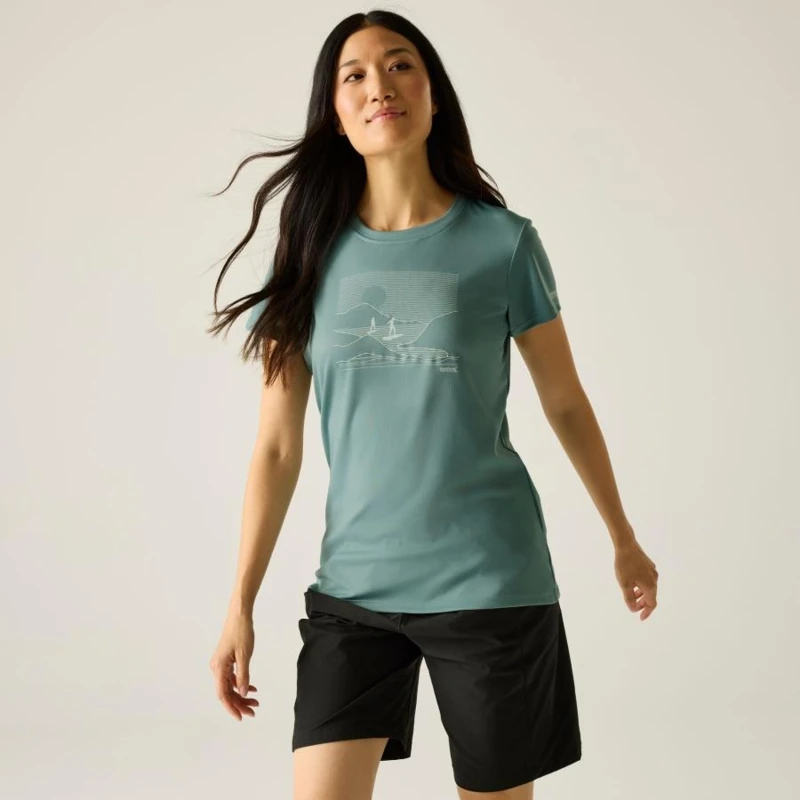 Női gyorsan száradó felső, Prémium női technikai sportfelső piké és marl jersey kombináció, gyors száradás, Ez a női technikai póló 100% poliészter piké anyagból készült 135 g/m? súlyban, amelyet 100% gyorsan száradó poliészter marl jersey betétek egészítenek ki 100 g/m? kivitelben. A könnyû, légáteresztő anyagok hatékony nedvességelvezetést és gyors száradást biztosítanak aktív mozgás közben. A grafikai nyomat modern, sportos megjelenést kölcsönöz a modellnek., Főbb jellemzők:, 100% poliészter piké anyag, 135 g/m?, 100% gyorsan száradó poliészter marl jersey anyag, 100 g/m?, Gyorsan száradó kialakítás, Hatékony izzadságelvezető teljesítmény, Grafikai nyomat, Ajánlott: Női technikai sportfelsőként ideális futáshoz, túrázáshoz, edzéshez, kiránduláshoz és nyári szabadtéri programokhoz. Kiváló választás meleg időben vagy intenzív mozgással járó tevékenységekhez, amikor fontos a könnyû súly és a komfort., Fenntarthatóság: A tartós poliészter alapanyag hosszú élettartamot biztosít, csökkentve a gyakori ruhacsere szükségességét. A minőségi kivitel hozzájárul a fenntarthatóbb ruhahasználathoz.