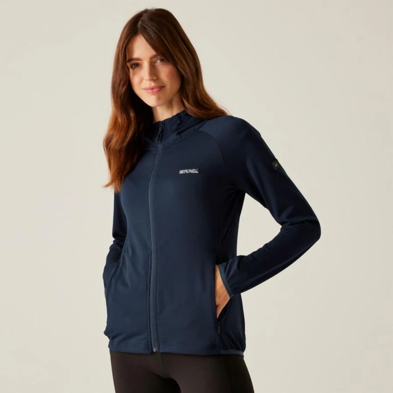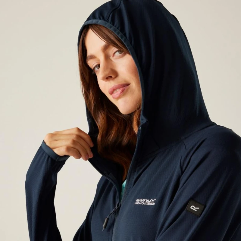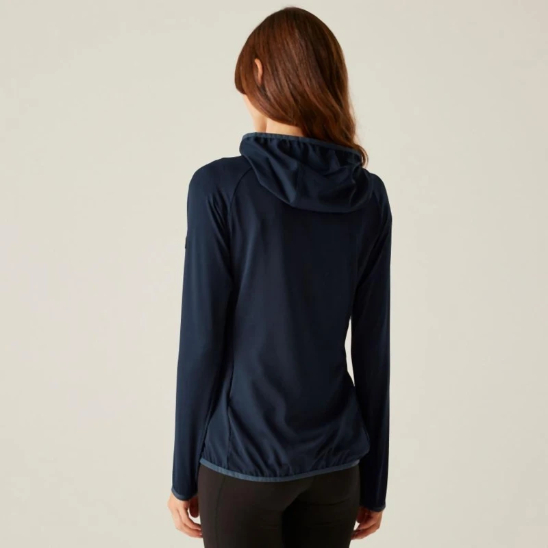 Női technikai pulóver, Anyag:, 155gsm újrahasznosított, 92% poliészter / 8% elasztán, könnyû stretch texturált mesh, Tulajdonságok:, Reach Technology – hónaljbetét a maximális mozgásszabadság és akadálytalan karhasználat érdekében, Beépített kapucni, 2 rejtett alsó cipzáras zseb, Rugalmas szegély a kapucni nyílásánál, mandzsettákon és derékrészen, Újrahasznosított tartalommal készült – környezettudatos választás, Ideális választás aktív életmódhoz és sportos viselethez.