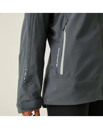 Női 15.000 mm vízálló esőkabát, Vízálló és lélegző Isotex 15000 stretch könnyû ripstop poliészter, Légáteresztő képesség: 10 000 g/m?/24 óra, Tartós vízlepergető felület, ragasztott varratok, a varrásnál leragasztva, hogy a tûpöttyöknél se ázzon át, fix kapucni, 2 cipzáras alsó zseb, Belső cipzáras zseb, Hónaljban szellőző cipzárak hálós béléssel, Állítható pánt a mandzsettánál, húzózsinórral állítható szegély