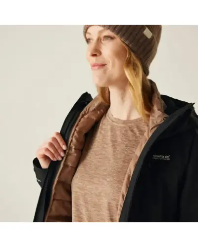 Női 3 in 1 kabát 15000 mm, 3 az 1-ben technikai dzseki Isotex 15000 & Thermoguard bélés, Ez a sokoldalú, 2 részes technikai kabát tökéletes választás azoknak, akik nem akarnak kompromisszumot kötni a vízállóság, szellőzés és mozgásszabadság terén. A külső héj Isotex 15000 stretch anyagból készült, így rugalmas, légáteresztő és teljes mértékben vízálló. A kivehető, könnyû, meleg belső kabát külön is hordható, vagy a héjba cipzárazva fokozott védelmet nyújt hideg időben., Külső kabát Megbízható védelem a zord időben:, Isotex 15000 stretch poliészter 165 g/m?, Lélegzőképesség: 15,000 g/m?/24h, DWR vízlepergető bevonat + ragasztott varratok, Technikai, merevített napellenzős kapucni állítóval, Középső cipzár vízelvezető csatornával, 1 mellzseb és 2 alsó cipzáras zseb, Előformázott ujjak szabad mozgás biztosítása, Belső cipzáras biztonsági zseb, Állítható mandzsetta és húzózsinóros alsó szegély, Belső kabát könnyû, meleg és külön is viselhető:, 100% poliamid külső 37 g/m?, Újrahasznosított Thermoguard szintetikus szigetelés 80 g, 2 alsó cipzáras zseb, Rugalmas szegély a gallérnál, ujjak végén és derékrészen, Újrahasznosított anyagból készült fenntartható döntés, ? Ajánlott: túrázáshoz, városi mindennapokra, átmeneti vagy téli időben., ??? Rugalmasság, védelem és környezettudatosság egy kabátrendszerben.