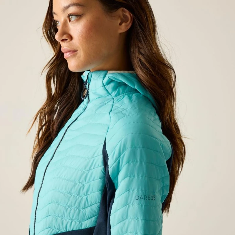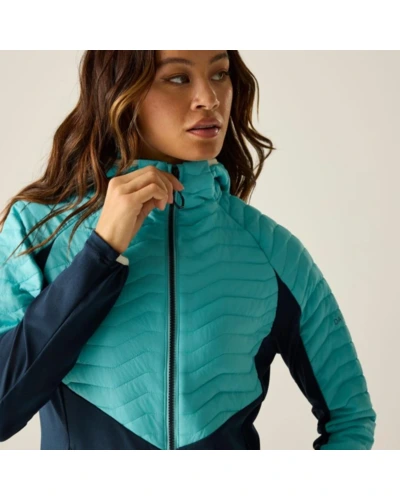 Női hybrid felső, Prémium női hibrid technikai kabát újrahasznosított ripstop és ILUS Stretch, 100 g ILOFT Air szigetelés, Ez a női hibrid kabát újrahasznosított poliészter ripstop és ILUS Stretch anyag kombinációjával készült, amely optimális egyensúlyt biztosít a hőszigetelés, a rugalmasság és a mozgásszabadság között. Az újrahasznosított poliészter ILOFT Air szigetelés minimális térfogat mellett is hatékony hőmegtartást nyújt, miközben rendkívül könnyû és jól kompresszálható, 100 g töltetsúllyal., Főbb jellemzők:, Hibrid anyagkonstrukció: újrahasznosított poliészter ripstop és ILUS Stretch panelek, Újrahasznosított poliészter ILOFT Air szigetelés, 100 g, Könnyû, jól kompresszálható, minimális térfogatú szigetelés, Szélálló panelek a szélhûtés minimalizálására, Tartós vízlepergető bevonat, PFC-, PFOA- és PFOS-mentes kivitel, SeamSmart technológia a szabad mozgásért, 2 alsó cipzáras zseb, Elasztikus mandzsetták és alsó szegély, Ajánlott: Női technikai hibrid kabátként ideális túrázáshoz, trekkinghez és aktív szabadtéri programokhoz hûvös, változékony időben. Kiváló választás, ha fontos a könnyû súly, a rugalmasság és a hatékony hőszigetelés., Fenntarthatóság: Az újrahasznosított poliészter alapanyag és a PFC-mentes kivitel csökkenti a környezeti terhelést, miközben tartós, hosszú élettartamú konstrukciót biztosít.