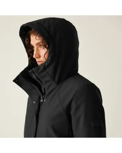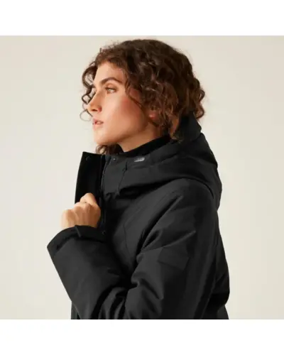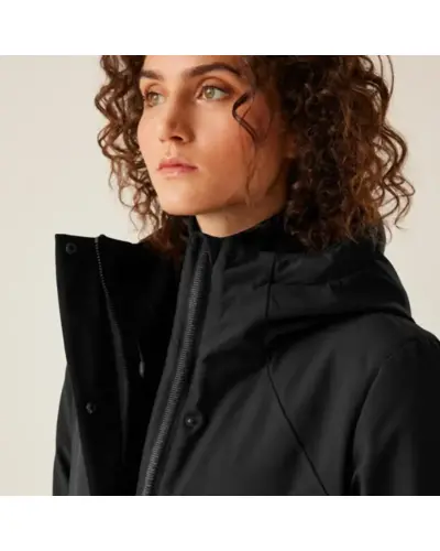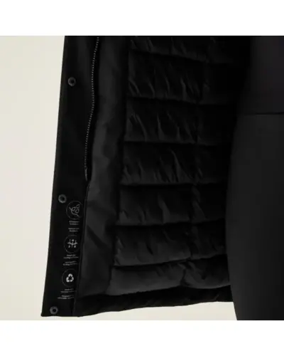 Női vízálló bélelt kabát, Újrahasznosított 100% poliészter vízlepergető stretch anyag:, Az újrahasznosított poliészter anyag környezetbarát, A vízlepergető tulajdonság segít abban, hogy az eső ne áztassa át a kabátot., A stretch anyag kényelmet és mozgásszabadságot biztosít., A membrán technológia biztosítja a víz- és szélállóságot, miközben lehetővé teszi a légáteresztést,, hogy a nedvesség kifelé távozzon., Közepes súlyú, tollmentes prémium újrahasznosított szintetikus pehelyszigetelés:, A szintetikus pehelyszigetelés melegen tart, anélkül, hogy állati eredetû anyagokat használnánk., Az újrahasznosított anyagok használata fenntarthatóbb megoldás., A poliamid bélés tartós és kopásálló, emellett kényelmes viseletet biztosít., Belső cipzáras biztonsági zseb:, Biztonságos tárolási lehetőséget nyújt a fontos tárgyak, például pénztárca vagy mobiltelefon számára., Az állítható kapucni extra védelmet nyújt az eső és szél ellen, valamint személyre szabható illeszkedést biztosít., Kétirányú középső elülső cipzár:, A kétirányú cipzár lehetővé teszi a szellőztetést és a mozgás szabadságát anélkül, hogy a kabátot teljesen ki kellene nyitni., Két alsó cipzáras zseb:, Praktikus tárolóhelyet biztosít a kisebb tárgyak számára, amelyeket könnyen elérhetsz., Belső Lycra mandzsetták:, A Lycra mandzsetták kényelmesek és megakadályozzák, hogy a hideg levegő bejusson a kabát ujjain keresztül., Ez a kabát ideális lehet túrázáshoz, városi közlekedéshez vagy bármilyen szabadtéri tevékenységhez, , ahol szükség van víz- és szélálló védelemre.