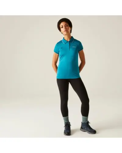 női gyorsan száradó póló, 100% gyorsan száradó cirmos poliészter jersey anyag, Bordázott gallér, Jó nedvszívó teljesítmény