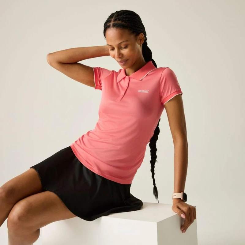 női gyorsan száradó póló, 100% gyorsan száradó cirmos poliészter jersey anyag, Bordázott gallér, Jó nedvszívó teljesítmény