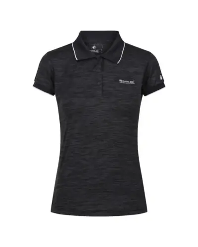 női gyorsan száradó póló, 100% gyorsan száradó cirmos poliészter jersey anyag, Bordázott gallér, Jó nedvszívó teljesítmény