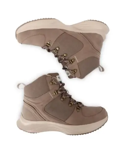 Női utcai bakancs, Női túracipő könnyû, vízálló és kényelmes minden terepen, Ez a női túracipő strapabíró nejlon vászon és PU bőr felsőrésszel készült, amely egyszerre biztosít tartósságot és stílusos megjelenést. A vízálló, légáteresztő ISOTEX membrán megóvja a lábat a nedvességtől, miközben megfelelő szellőzést biztosít., A TECFOAM formázott nyitott cellás talpbetét rugalmas és kényelmes alátámasztást nyújt, az EVA középtalp pedig könnyû, hajlékony járást tesz lehetővé. A könnyû, mégis strapabíró TPR öntött külső talp kiváló tapadást garantál különböző felületeken., Ajánlott: túrázáshoz, természetjáráshoz és mindennapi szabadtéri tevékenységekhez, ahol fontos a vízállóság, a kényelem és a megbízható tapadás.