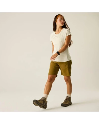 Női túra short, Rugalmas és strapabíró túranadrág UV-védelemmel, Újrahasznosított poliészter/elasztán keverék könnyû, légáteresztő és rugalmas, 4 irányú sztreccs anyag a maximális mozgásszabadságért, Tartós vízlepergető (DWR) bevonat az extra védelem érdekében, Részben rugalmas derékrész a jobb illeszkedésért, Funkcionális cipzáras zsebek és cipzáras slicc a praktikus tárolásért, UV Shielding (UPF 50+) kiváló napvédelem, PFC, PFOA, PFOS mentes anyag környezetbarát választás, Ez a rugalmas és strapabíró túranadrág tökéletes választás túrázáshoz, szabadtéri sportokhoz és változékony időjáráshoz. Kopásálló, vízlepergető és UV-védett anyaga maximális komfortot biztosít, míg a rugalmas kialakítás extra mozgásszabadságot nyújt. Az újrahasznosított anyagok és vegyszermentes bevonat fenntartható döntést kínálnak.