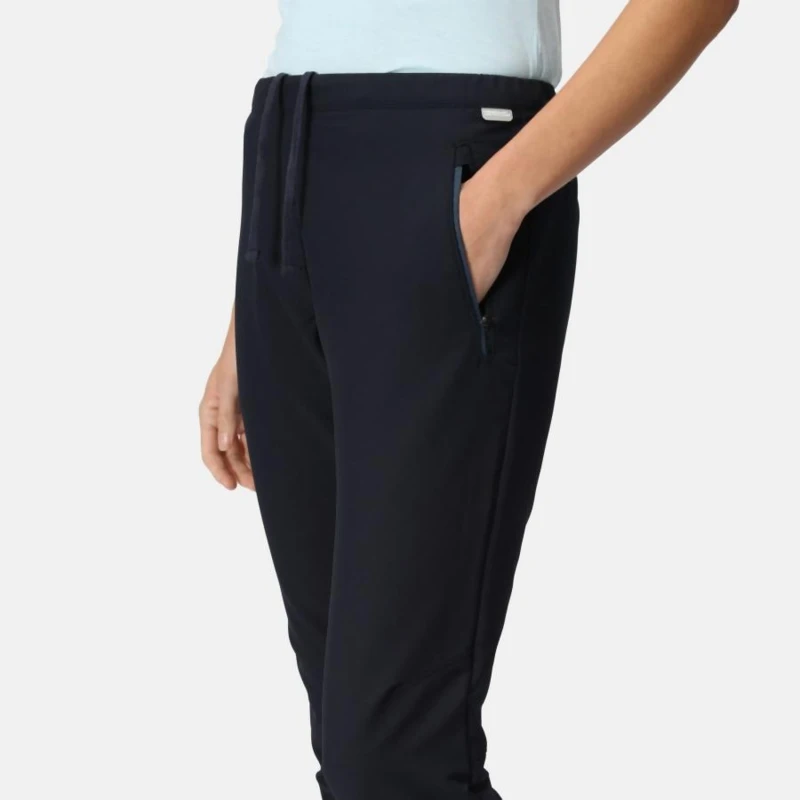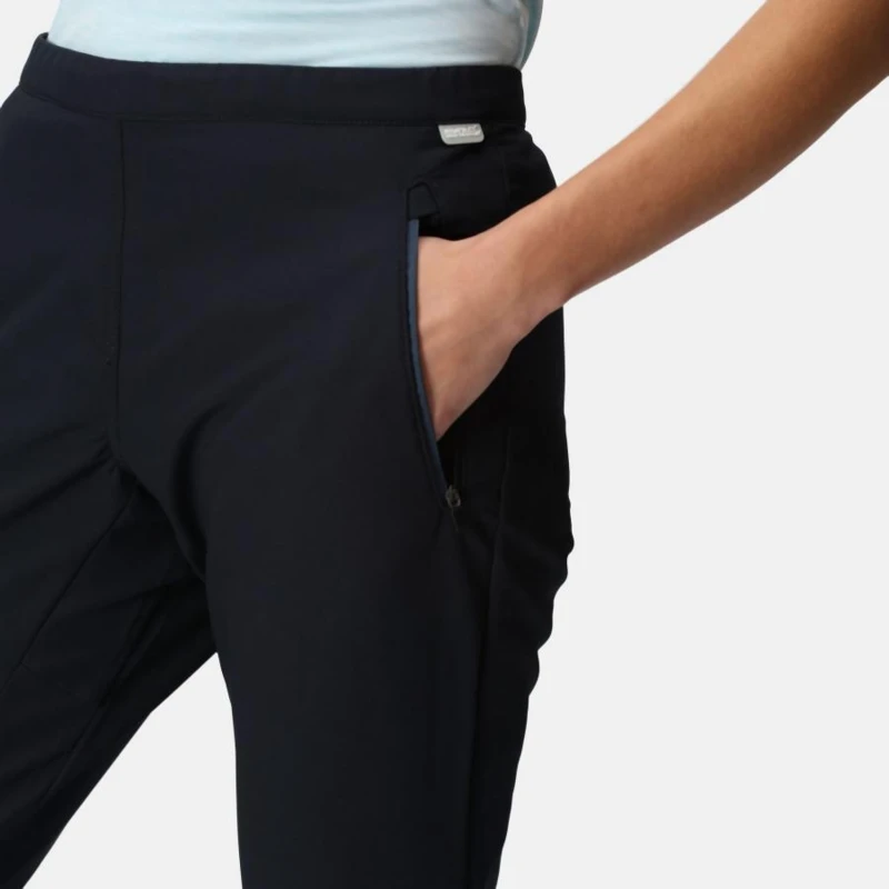 Női túranadrág, Extol stretch anyag - 94% poliészter/6% elasztán, Tartós vízlepergető felület, Zsinóros derékbeállító, 2 cipzáras elülső zseb, szabott térd kialakítás