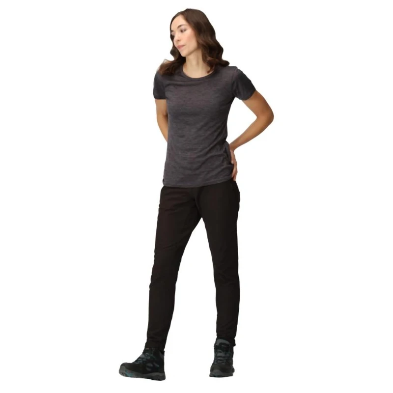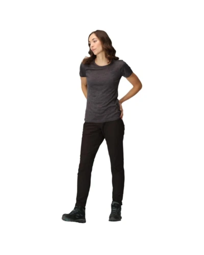 Női túranadrág, Extol stretch anyag - 94% poliészter/6% elasztán, Tartós vízlepergető felület, Zsinóros derékbeállító, 2 cipzáras elülső zseb, szabott térd kialakítás