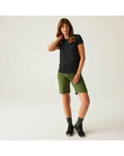 női technikai short, Rugalmas 96% poliészter 4% elasztán Isoflex anyag, Nagyon könnyû, Tartós víztaszító felület, Gyorsan száradó anyag, Részben gumírozott derekrész övvel, Több zsebes - elöl és hátul cipzáros zsebekkel
