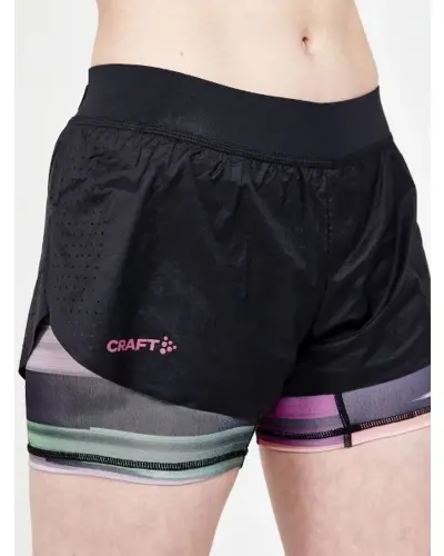 női technikai short, Rugalmas 96% poliészter 4% elasztán Isoflex anyag, Nagyon könnyû, Tartós víztaszító felület, Gyorsan száradó anyag, Részben gumírozott derekrész övvel, Több zsebes - elöl és hátul cipzáros zsebekkel
