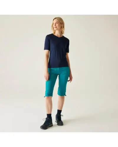 női technikai capri, Rugalmas Isoflex anyag, Nagyon könnyû, Tartós víztaszító felület, Gyorsan száradó anyag, Részben gumírozott derekrész övvel, Több zsebes - elöl és hátul cipzáras zsebek, Húzózsinórral állítható lábszár szegély, Ergonomikus kialakítás