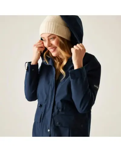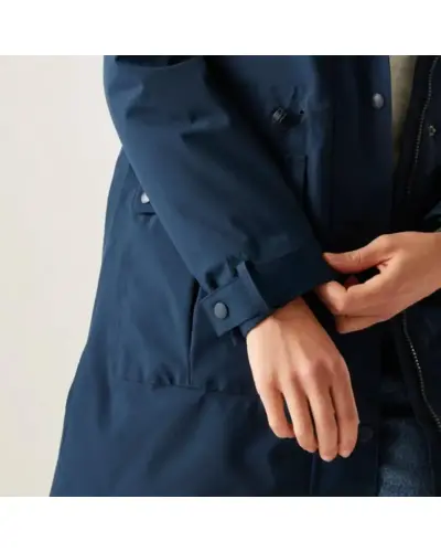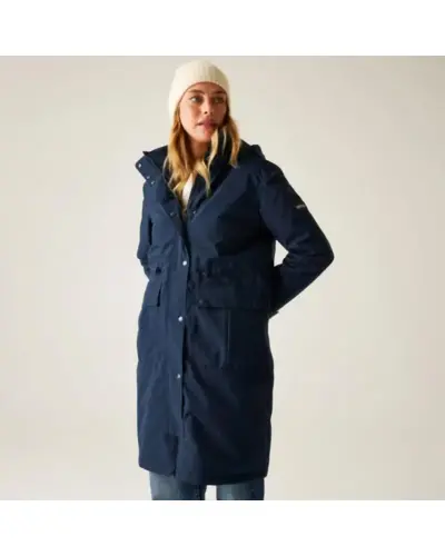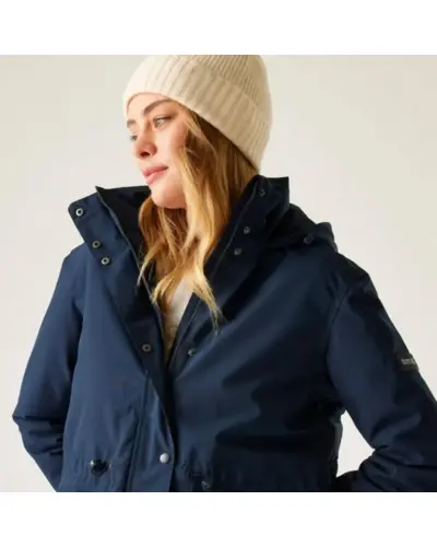 Női bélelt kabát 10000 mm, Női peached hatású, vízálló télikabát elegáns megjelenés, meleg védelem, Ez a puha tapintású, mégis strapabíró női kabát nemcsak stílusos, de minden szempontból praktikus választás hûvös, csapadékos napokra. A vízálló, légáteresztő Isotex 10000 újrahasznosított poliészter anyag kiváló védelmet biztosít, míg a könnyû 100 g-os Thermoguard szigetelés kényelmes meleget ad anélkül, hogy túl vastag lenne. A levehető mûszőrmés kapucni és a karcsúsítható derékrész nőies megjelenést kölcsönöz, a polárbéléses kapucni pedig extra komfortot biztosít., Anyag: újrahasznosított peached poliészter Isotex 10000 (110 g/m?), Légáteresztés: 10,000 g/m?/24 óra, Ragasztott varrások teljes vízállóság, 100 g/m? újrahasznosított Thermoguard szigetelés, Polárbéléses kapucni, levehető mûszőrmével, Állítható derék húzózsinórral karcsúsított szabás, 2 nagy patch zseb + belső cipzáras biztonsági zseb, Tépőzáras, állítható mandzsetták, 100% poliészter taffeta bélés, Környezetbarát újrahasznosított anyagból készült, ? Tökéletes társ: városi sétákhoz, hétköznapokra és hideg, esős időjárásra, ?? Stílusos, meleg és fenntartható minden szempontból jó választás.