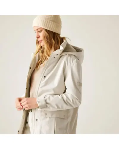 Női bélelt kabát 10000 mm, Női peached hatású, vízálló télikabát elegáns megjelenés, meleg védelem, Ez a puha tapintású, mégis strapabíró női kabát nemcsak stílusos, de minden szempontból praktikus választás hûvös, csapadékos napokra. A vízálló, légáteresztő Isotex 10000 újrahasznosított poliészter anyag kiváló védelmet biztosít, míg a könnyû 100 g-os Thermoguard szigetelés kényelmes meleget ad anélkül, hogy túl vastag lenne. A levehető mûszőrmés kapucni és a karcsúsítható derékrész nőies megjelenést kölcsönöz, a polárbéléses kapucni pedig extra komfortot biztosít., Anyag: újrahasznosított peached poliészter Isotex 10000 (110 g/m?), Légáteresztés: 10,000 g/m?/24 óra, Ragasztott varrások teljes vízállóság, 100 g/m? újrahasznosított Thermoguard szigetelés, Polárbéléses kapucni, levehető mûszőrmével, Állítható derék húzózsinórral karcsúsított szabás, 2 nagy patch zseb + belső cipzáras biztonsági zseb, Tépőzáras, állítható mandzsetták, 100% poliészter taffeta bélés, Környezetbarát újrahasznosított anyagból készült, Tökéletes társ: városi sétákhoz, hétköznapokra és hideg, esős időjárásra, Stílusos, meleg és fenntartható minden szempontból jó választás.