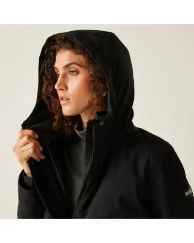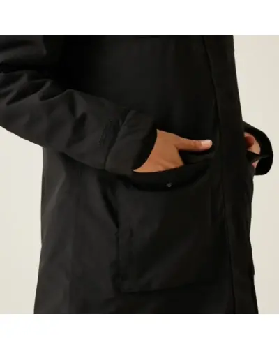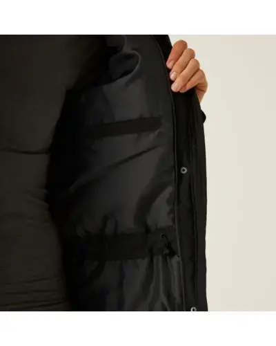 Női bélelt meleg kabát 15000 vízálló és lélegző, Vízálló és lélegző Isotex 15000 újrahasznosított 100% poliészter rugalmas anyag, Légáteresztési érték: 10,000 g/m?/24 óra, Tartós vízlepergető bevonat, Ragasztott varratok a maximális vízállóság érdekében, Közepes súlyú újrahasznosított Thermoguard szigetelés, Puha polár bélés a felsőtesten és a kapucniban, 100% poliészter taft bélés az alsótesten, Belső biztonsági zseb, Beépített kapucni rejtett állítókkal, Állítható húzózsinóros derék, Hosszabb fazon, 2 alsó, kettős nyílású foltzseb, Belső viharmandzsetták, Ez a kabát tökéletes választás a hideg és nedves időjárási körülményekre. Az Isotex 15000 anyag , rugalmas, vízálló és lélegző, így kényelmes viseletet biztosít, miközben a Thermoguard szigetelés és a , puha polár bélés melegen tartja a viselőjét. A hosszabb fazon és a praktikus zsebek extra kényelmet , és funkcionalitást nyújtanak. A kabátot újrahasznosított anyagokból készült