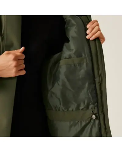 Női bélelt meleg kabát 15000 vízálló és lélegző, Vízálló és lélegző Isotex 15000 újrahasznosított 100% poliészter rugalmas anyag, Légáteresztési érték: 10,000 g/m?/24 óra, Tartós vízlepergető bevonat, Ragasztott varratok a maximális vízállóság érdekében, Közepes súlyú újrahasznosított Thermoguard szigetelés, Puha polár bélés a felsőtesten és a kapucniban, 100% poliészter taft bélés az alsótesten, Belső biztonsági zseb, Beépített kapucni rejtett állítókkal, Állítható húzózsinóros derék, Hosszabb fazon, 2 alsó, kettős nyílású foltzseb, Belső viharmandzsetták, Ez a kabát tökéletes választás a hideg és nedves időjárási körülményekre. Az Isotex 15000 anyag , rugalmas, vízálló és lélegző, így kényelmes viseletet biztosít, miközben a Thermoguard szigetelés és a , puha polár bélés melegen tartja a viselőjét. A hosszabb fazon és a praktikus zsebek extra kényelmet , és funkcionalitást nyújtanak. A kabátot újrahasznosított anyagokból készült
